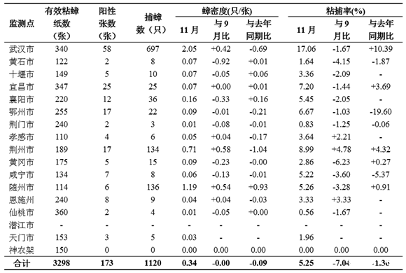 湖北省病媒生物监测简报(2019年11月)
