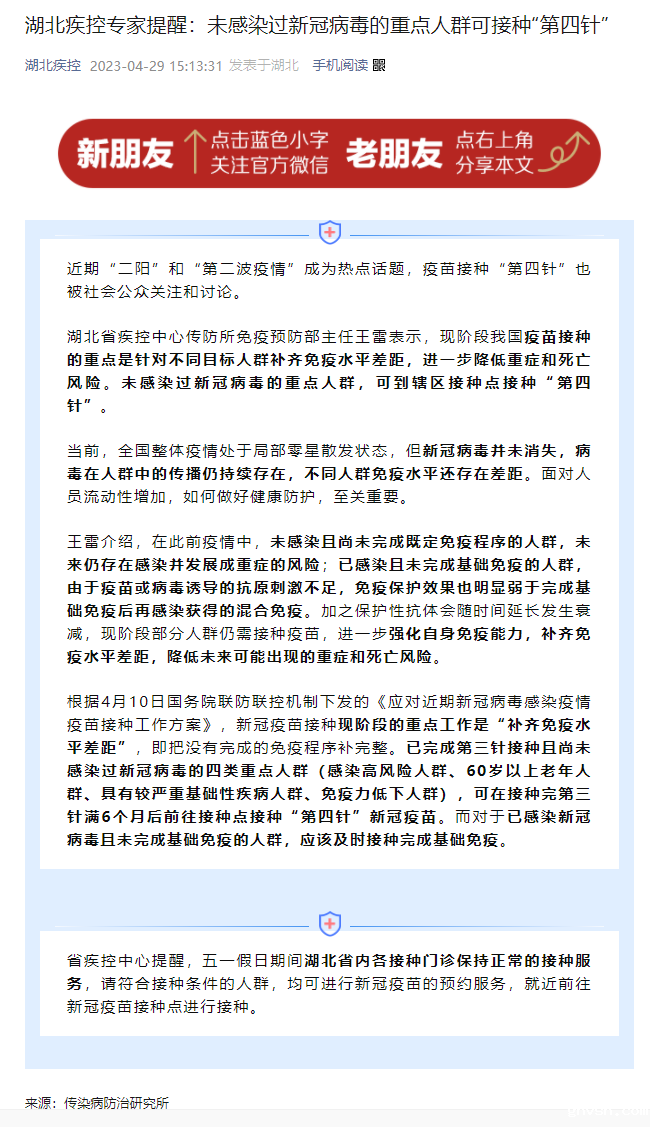 优米官网首页下载安装专家提醒:未感染过新冠病毒的重点人群可接种“第四针”