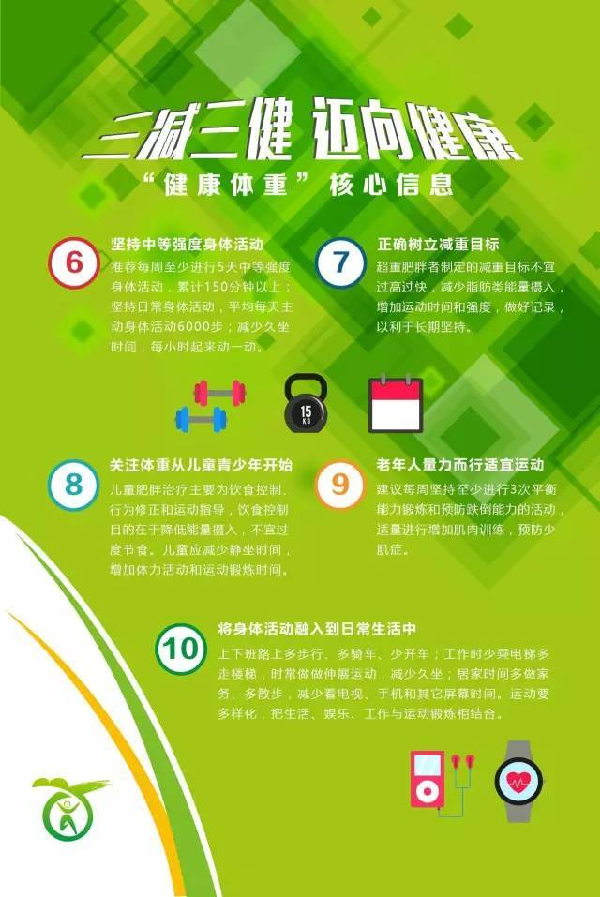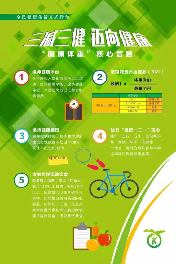 践行“日行一万步,吃动两平衡,健康一辈子”的健康一二一理念,通过合理饮食与科学运动即可保持健康体重。